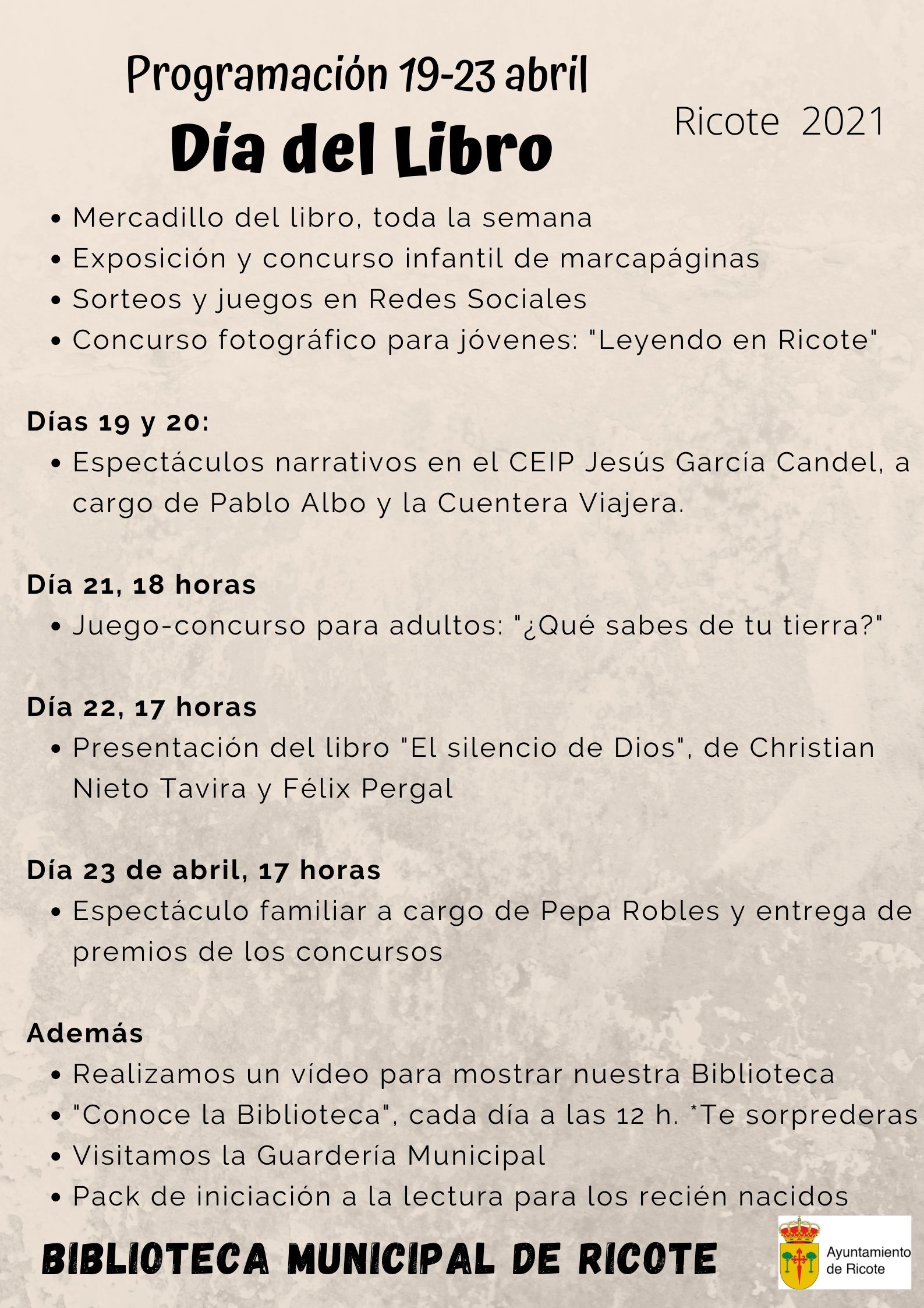El día 23 de abril se celebra el Día Internacional del Libro, motivo por el cual se ha preparado una programación de actividades para toda la semana. Habrá recitales, juegos, concursos, y espectáculos infantiles.