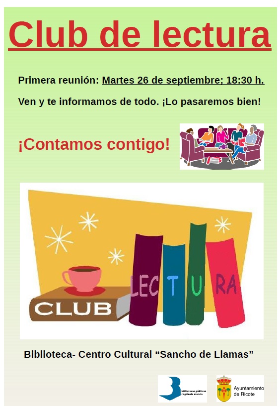 – el martes 26 inauguramos nuestro Club de Lectura; a las 18:30 h. la primera sesión informativa.