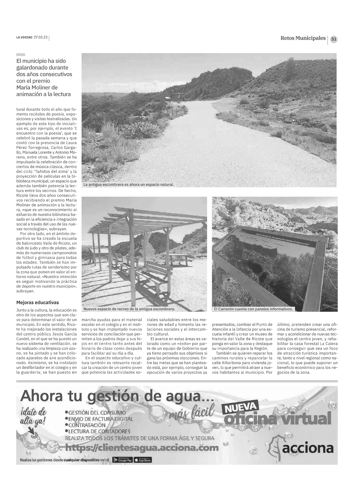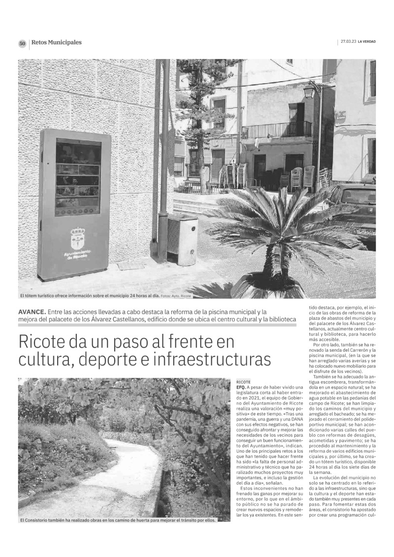 Ricote da un paso al frente en cultura, deporte e infraestructura