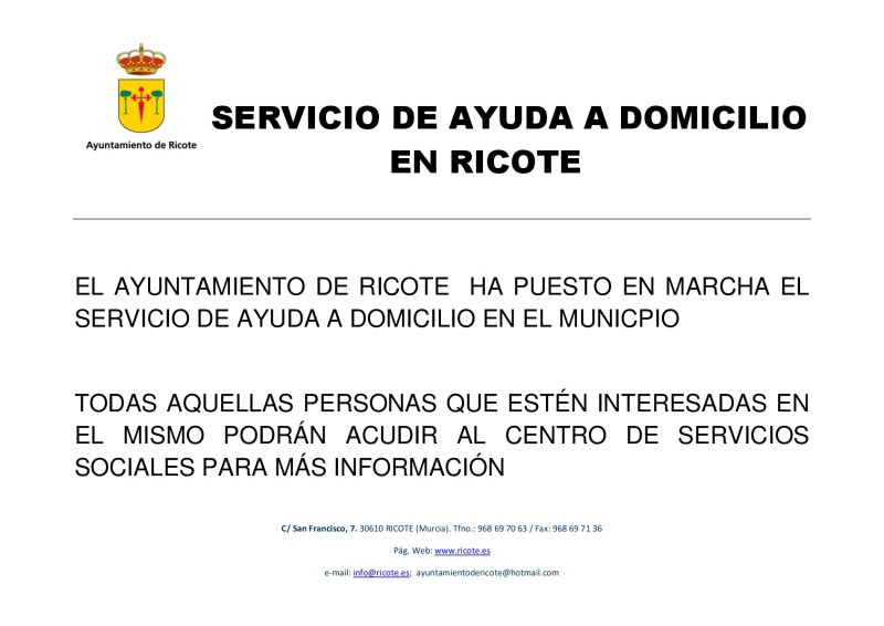 SERVICIO DE AYUDA A DOMICILIO EN RICOTE