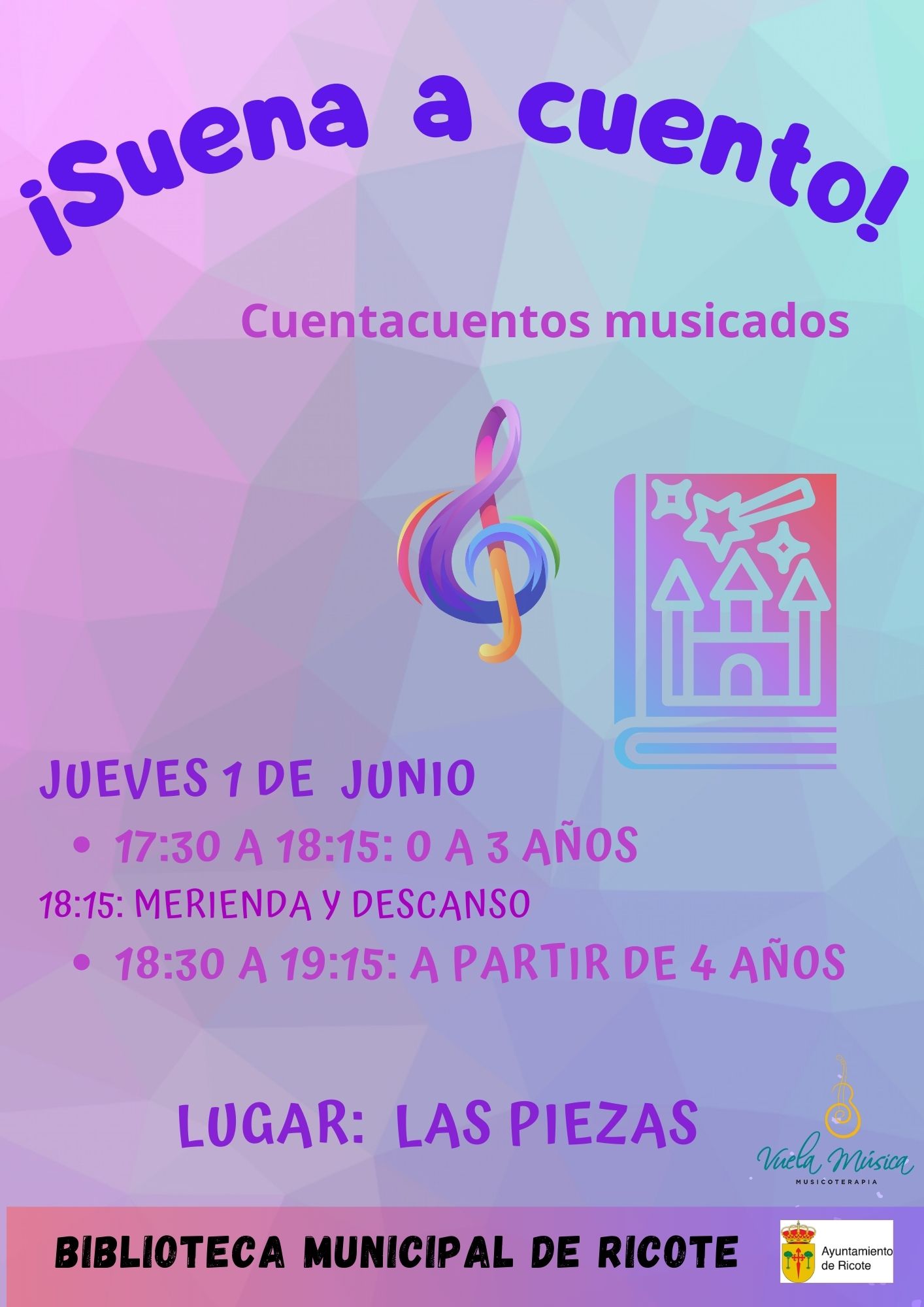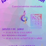 El próximo jueves, día 1 de junio, habrá una sesión de cuentacuentos musicados. Será realizado por Vuela Música, una formación de musicoterapia que ofrecerá la actividad “Suena a cuento”, que promueve el disfrute de la música y los cuentos, así como el desarrollo evolutivo de los más pequeños.