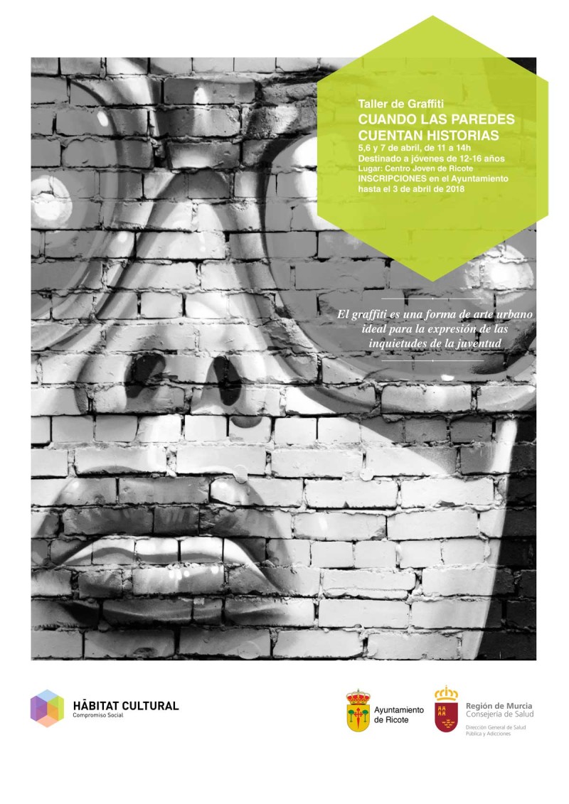 TALLER DE GRAFFITI TALLER DE GRAFFITI 5,6 Y 7 DE ABRIL DE 17 A 20H (INSCRIPCIONES EN AYUNTAMIENTO) Comparte en FacebookTweet