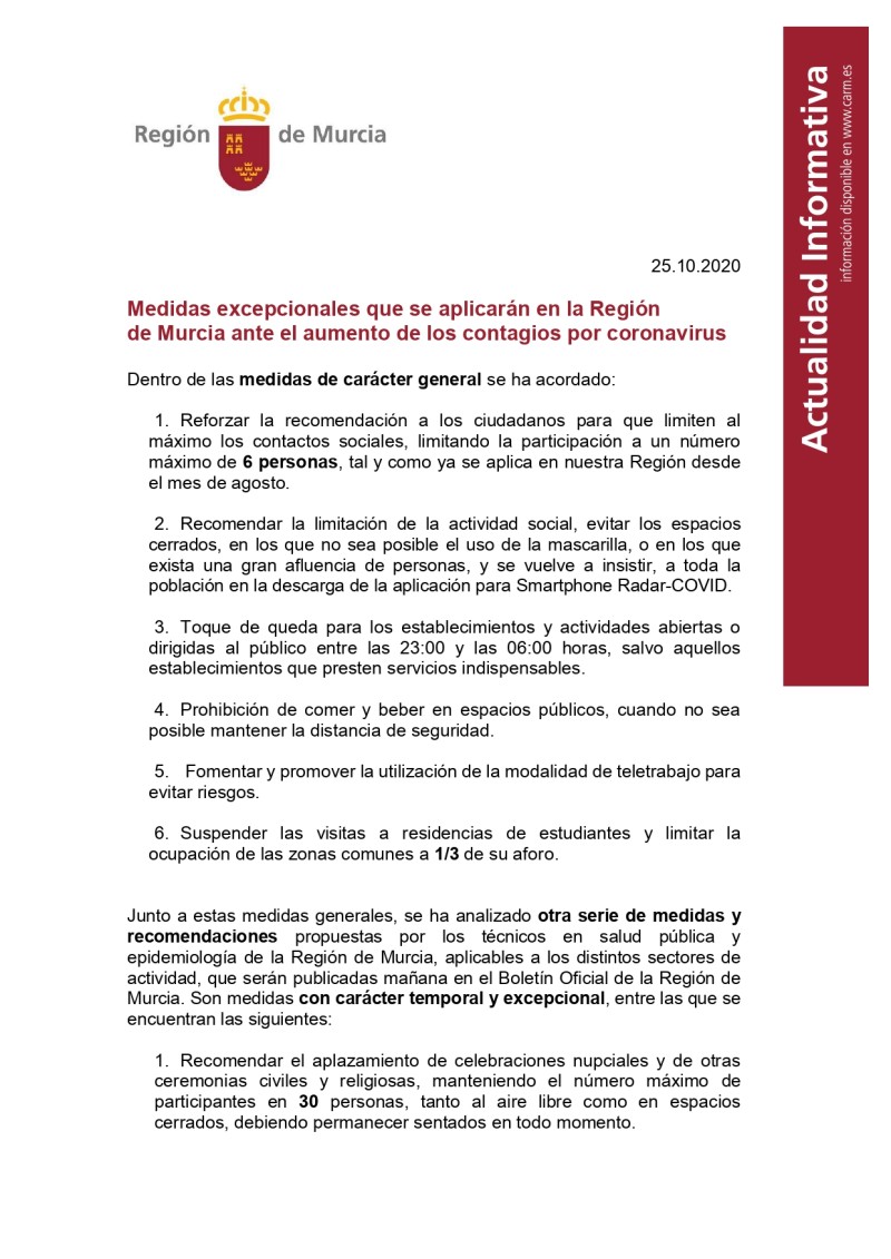 ÚLTIMAS MEDIDAS COVID-19 EN LA REGIÓN DE MURCIA DESCARGAR NUEVAS MEDIDAS AQUÍ Comparte en FacebookTweet
