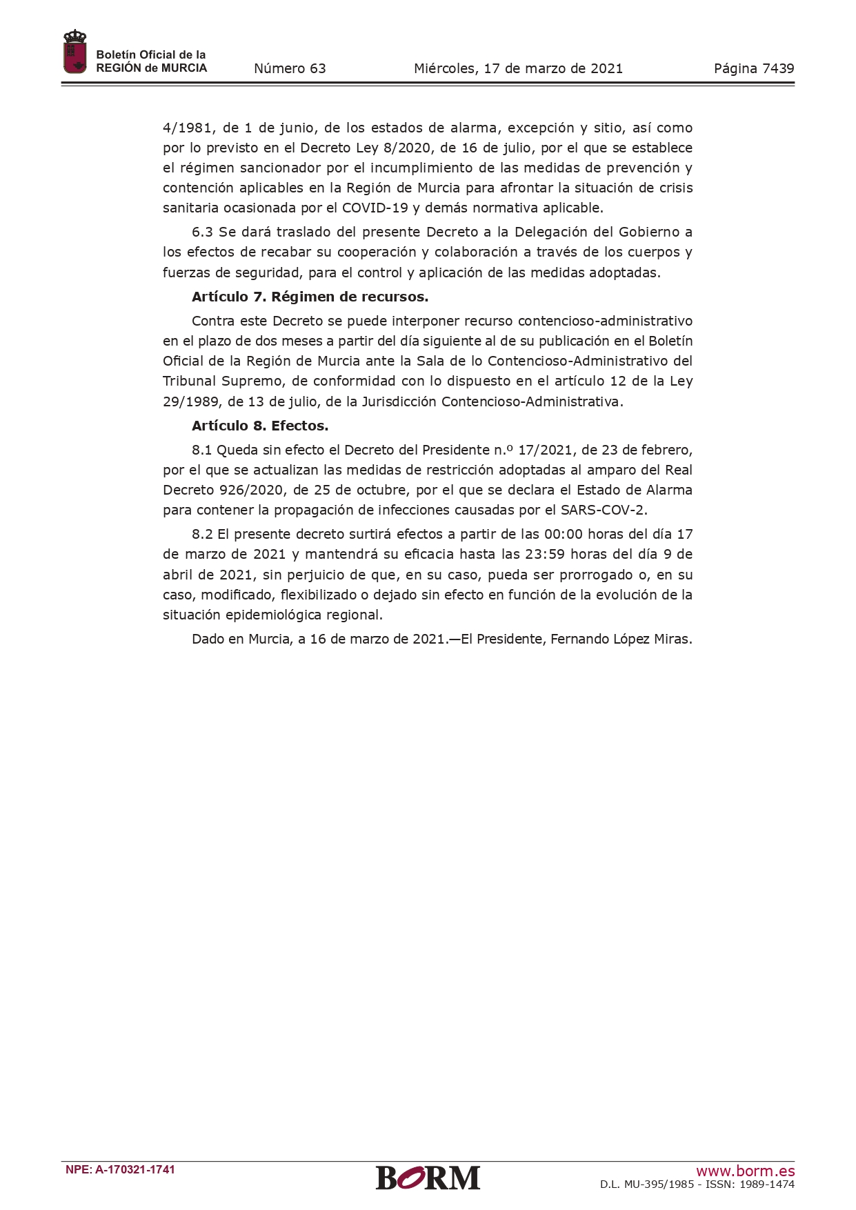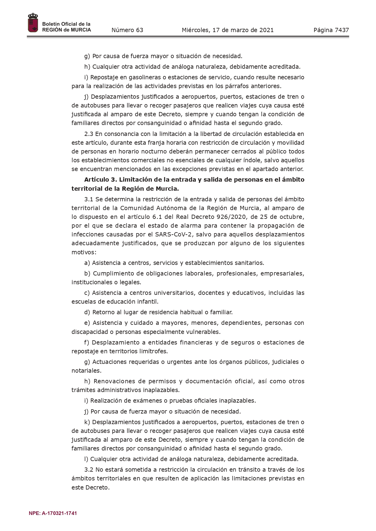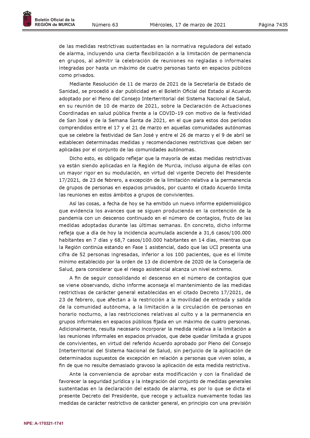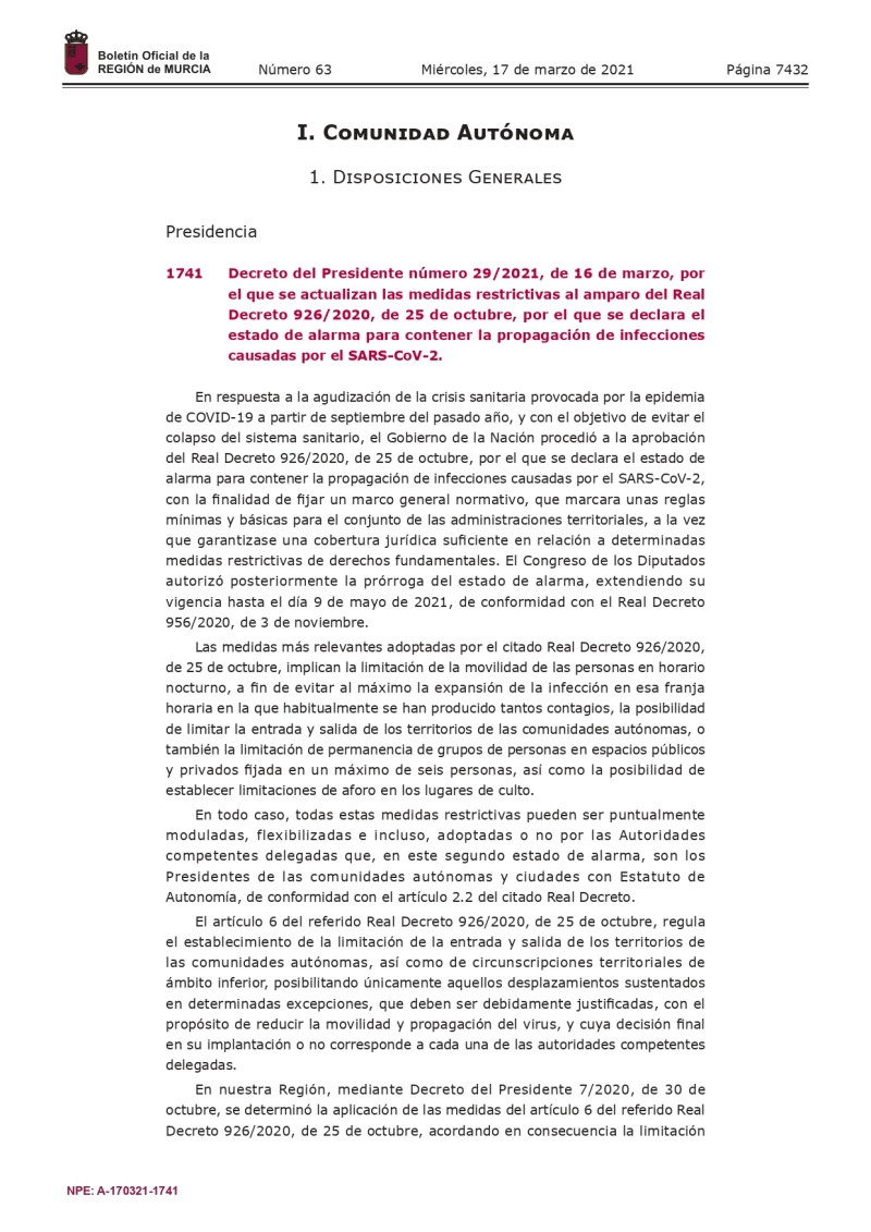 ÚLTIMAS MEDIDAS RESTRICTIVAS COVID-19 REGION DE MURCIA