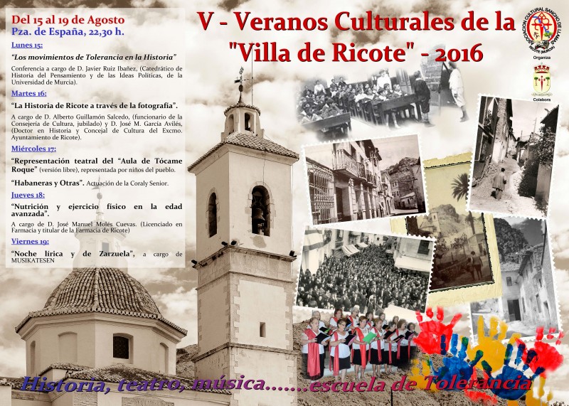 La Asociación Cultural Sancho de Llamas organiza un año más los “Veranos culturales de la Villa de Ricote”. Una excelente ocasión para disfrutar de nuestro pueblo. Os esperamos.