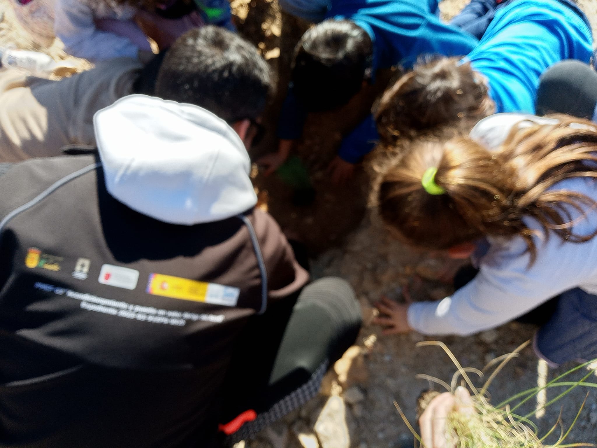 Los alumnos del PMEF-GJ “Acondicionamiento y puesta en valor Abrigo del Azud”, recibieron la visita del CEIP “Jesús García Candel”, y en una jornada de convivencia donde además de realizar distintas actividades organizados por el PMEF-GJ, pudieron realizar entre otras actividades; labores de plantación, riego y dinámicas, además visitaron los trabajos realizados por los alumnos del PMEF-GJ, explicando las distintas actuaciones realizadas. Agradecemos tanto al equipo directivo como a todos los profesores por su colaboración e implicación. Además del proyecto, se ha realizado distintas actuaciones de mantenimiento, reposición de cartelería, e instalación de medidas de seguridad y vigilancia tanto en “El Carrerón”, “Antigua Escombrera” y “Abrigo del Azud”, actuaciones encaminadas tanto al mantenimiento como a la conservación de los trabajos realizados, agradecemos y animamos a todos y a todas a seguir conservando nuestro maravilloso patrimonio natural y cultural.