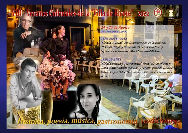 RICOTE RECUPERA GRACIAS A LA ASOCIACIÓN CULTURAL SANCHO DE LLAMAS LOS TRADICIONALES VERANOS CULTURALES DE LA VILLA, MUY APRECIADOS POR TODOS LOS RICOTEÑOS/AS Y SUS VISITANTES .